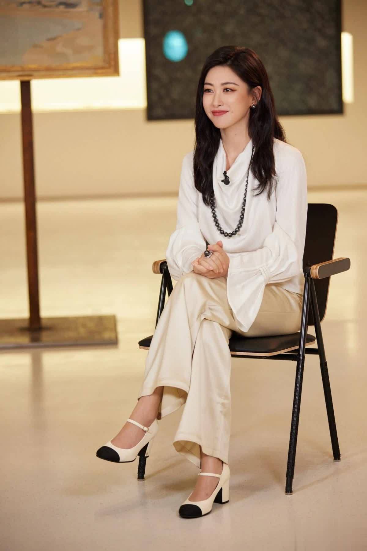 朱珠气质出众,白色衬衫搭配缎面阔腿裤,光泽感十足,尽显高级。阔腿裤设计展现身材优势,彰显自信从容,整体造型时尚且具职业感。